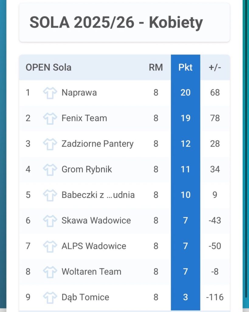 Po pierwszym turnieju klasyfikujemy się na 4. miejscu, co daje nam solidny punkt wyjścia do dalszej walki o czołówkę tabeli. Wiemy jednak, że stać nas na więcej – i właśnie po to trenujemy!